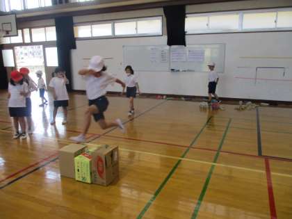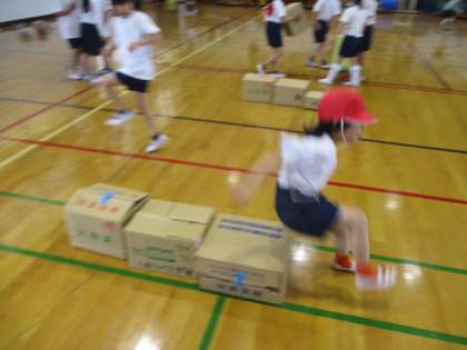とびあそびの学習ではことびをしました。グループで工夫して遊んでいます。