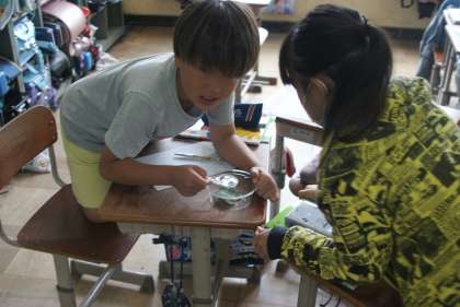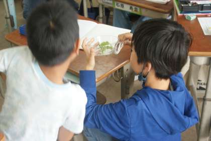 モンシロチョウの卵を観察しました。2mmほどの小さな卵が今後どのようにチョウに成長していくのか。今後もしっかりと観察していきます。