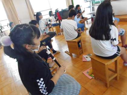 音楽では、リコーダーで「小さな約束」を演奏することに挑戦しています。この曲には、♯ソの音がでてくるので、穴の押し方を確認しました。サミングもたくさんでてくる曲なので、難しさを感じる子もいたようですが、一生懸命に練習をしていました。