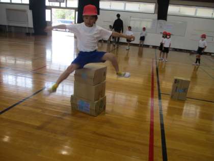とびあそびでは、2組の最後の授業でした。1時間たっぷりと今まで取り組んだあそびをグループで選んで活動しました。今までで一番高く、遠く跳べるようになった!と喜んでいる姿が見られました。