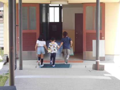 2年生のお兄さん、お姉さんに手をつないでもらいながら、いつもは入れない教室に入らせてもらったり、お仕事している様子を見せてもらったりしました。