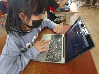 1学期の総合的な学習の時間では、「京都の自然」について学習します。この日は、タブレットを活用し、グループごとに様々な京都の自然について調べました。