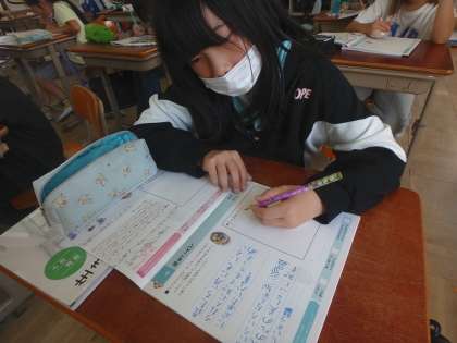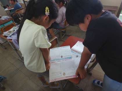 「海をこえて」の話を読み、それぞれの国のよさについて考えました。学習の最後には、自分の知っている他の国のよさについて話し合いました。それぞれに知っていることを話し合い、とても盛り上がりました。