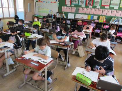 学習に関わる教科書のページや前のノート、動画などの資料を活用しながら、ノートに頑張ってまとめています。