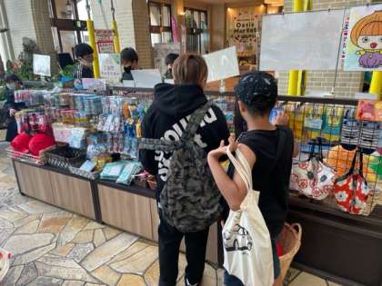 淡路ハイウェイオアシスで最後のお土産タイムをしました。残りのお金を計算しながら、じっくり何を買うのか悩みながら選んでいました。