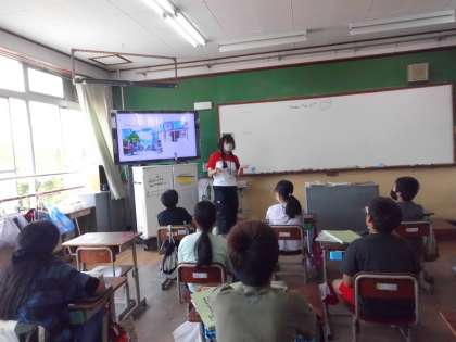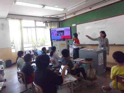 5年生になって、初めてALTの先生との授業がありました。ゴールデンウィークの過ごし方のスピーチを聞いて、クイズに答えました。子ども達は、興味深々でした。
