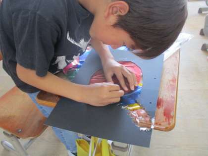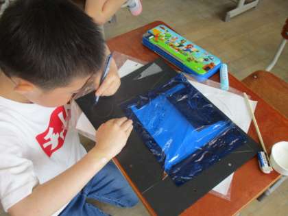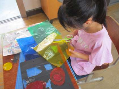 光のプレゼントの学習で、丁寧に工夫してカラーセロハンをはっていきました。完成が楽しみです。