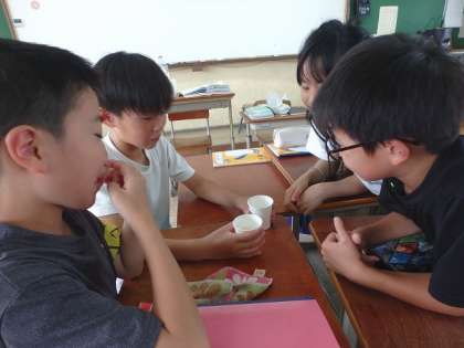 京都市の水道水は琵琶湖からやってきていることを知った子どもたち。実際に琵琶湖の水と京都市の水道水を比べて気付いたこと・疑問に思ったことから学習問題を立てました。
