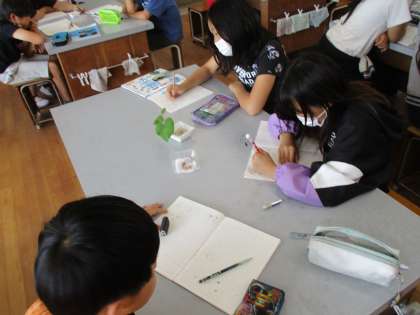 今回の学習では、種子の中がどうなっているのかを半分に割って観察してみました。