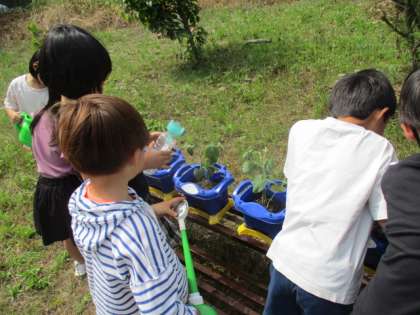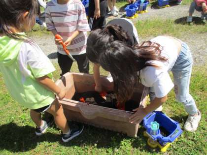 ぐんぐんそだておししいやさいでは、枝豆を育てることにしました。新しい土を入れて準備をしました。