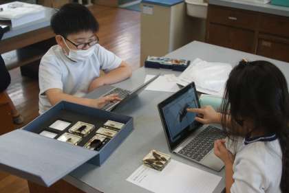 昆虫の標本を観察しながら、昆虫の特徴を調べました。