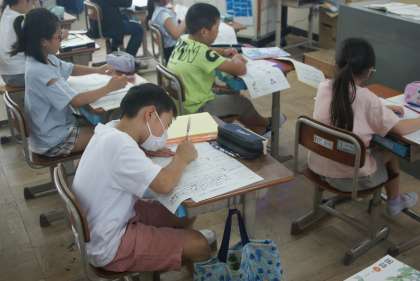 こまを楽しむという説明文を読んで、問いの答えを探して読んでいます。しっかりと大切な言葉や文に気を付けて読むことができるようになってきました。