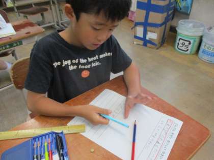 枝豆の種の観察をしました。見たり、触ったり、においをかいだりしてよく観察しました。
