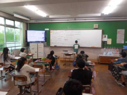 小数のわり算の学習では,4年生までに習ったことを生かして自分の力で問題に取り組んでいます!式を説明するための図もしっかりと書けています!