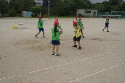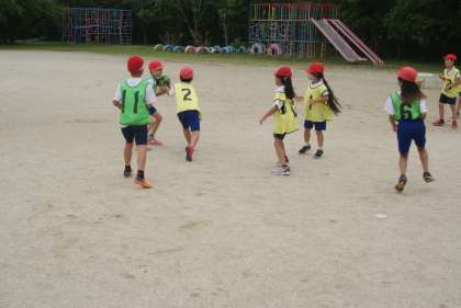 体育の学習では、エンドボールの学習を始めました。試合の進め方とルールを確認しました。今後さらに得点が取れるようにチームで協力してがんばります。