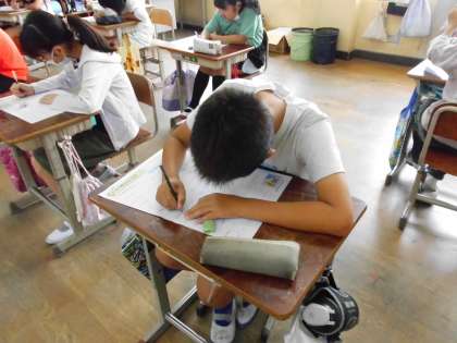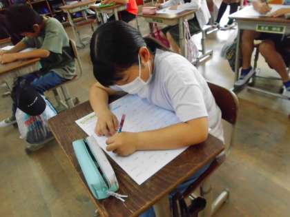 漢字の50問テストをしました。どの子も一生懸命に取り組んでいました。