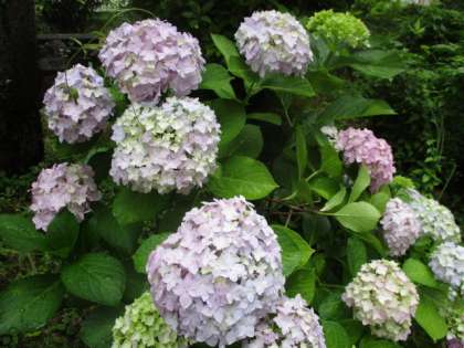 中庭には紫陽花(あじさい)の花がたくさん咲いています。