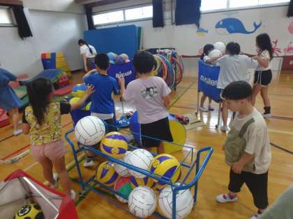 体育館のたてわりそうじの様子です。高学年の人たちが中心となって、進んで掃除に取り組んでいました。すばらしい!