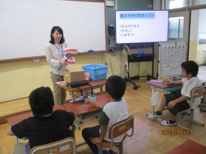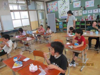 学習の最後には、教えてもらったことを生かしながら、鏡を見て丁寧に歯を磨きました。