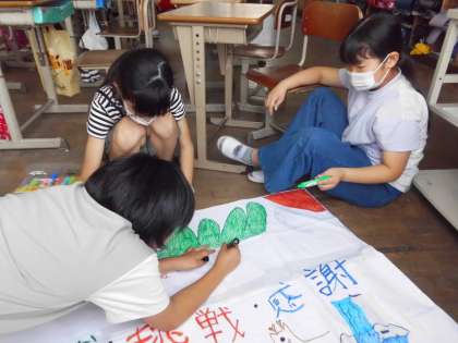 山の家にむけて、旗を作りました。とても素敵な旗が完成しました!