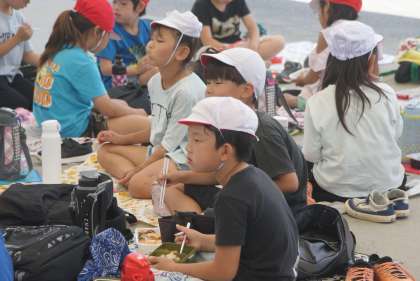 梅小路公園で宮山小学校のみんなとおいしくお弁当をいただきました。