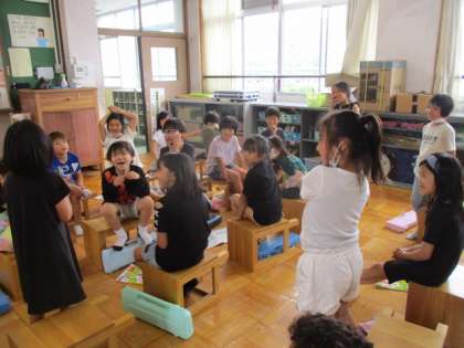 リズムに合わせて手拍子をしました。