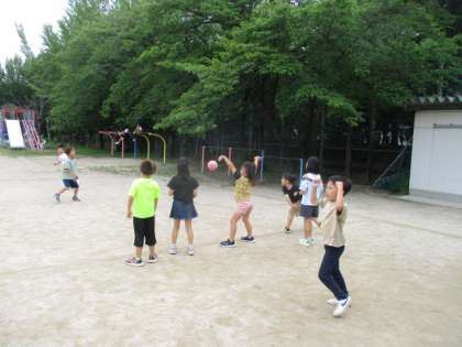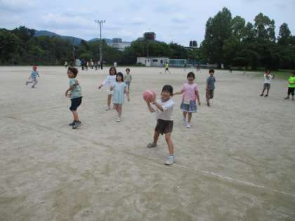 みんな遊びでドッジボールをしました。白熱した戦いでした。