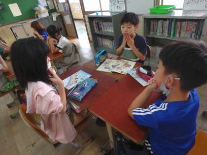 新しい学習が始まりました。チャンツやキーワードゲームをしながら、時刻や日課の言い方を知りました。