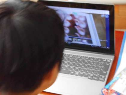 図鑑の写真を取り込んだり、クイズの文を録音したりしました。