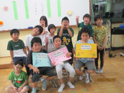 くすのき学級の6月生まれのお友だちをクラスのみんなでお祝いしました。ドッチボールをしたり、おにごっこをしたり、汗だくになって楽しんだ後は、ハッピーバースデーの歌でお祝いの気持ちを伝えました。とても盛り上がったお誕生日会でした☆