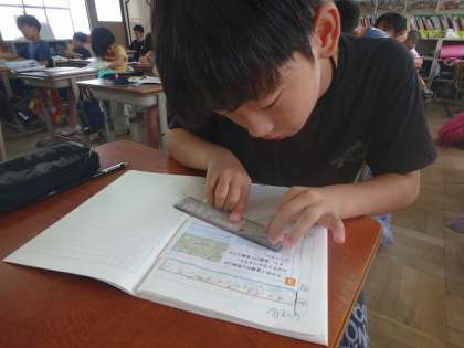 平行について学習しました。教室の中ではたくさんの平行を見つけることができました。