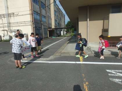4年生の学級代表として、朝のあいさつ運動に参加しました。朝から元気なあいさつをすると気持ちがいいですね!