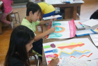 6月をイメージしながら絵を描きました。梅雨というイメージが強い6月ですが、雨の中にも楽しさを見出して絵を描いている子どもたちがたくさんいました。