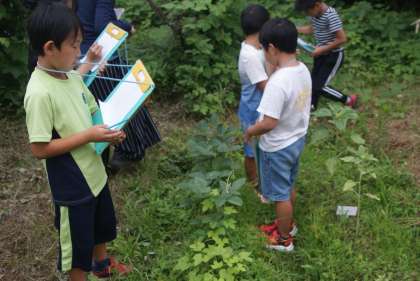 植物の成長の様子を観察しました。花が咲いているものもあれば、実がなっているものもありました。