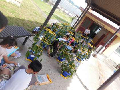 5月に種をまいた朝顔がとても大きくなったので、観察をしました。