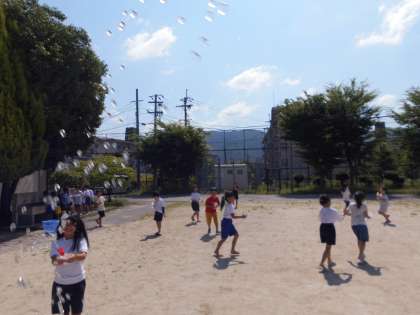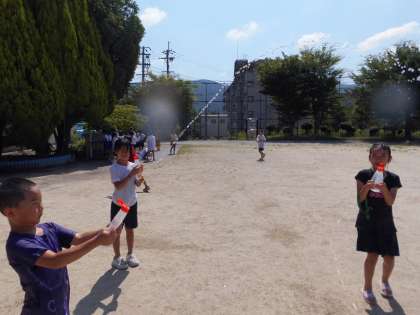 とても暑い日だったので、水がかかる気持ちよさを感じながらみんなで楽しんでいました。