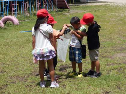 夏と言えば、虫取り。という子どもたちの意見から、みんなで虫取りや草花で遊びました。