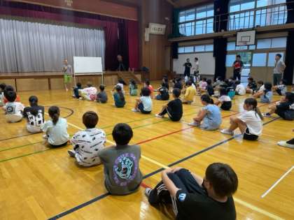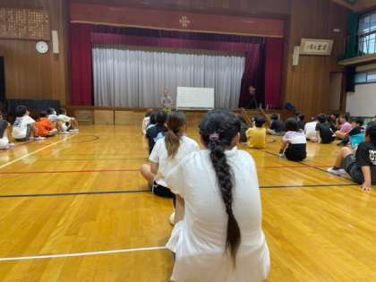 消防士の方に来ていただいていたので、体の浮く仕組みについてや、浮き方について教えていただきました。