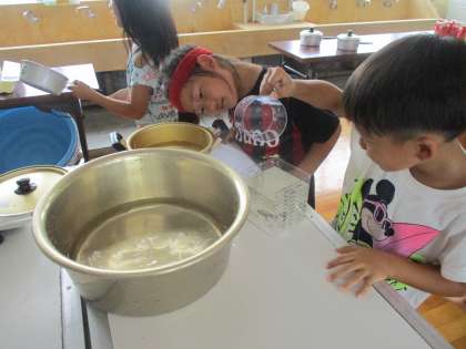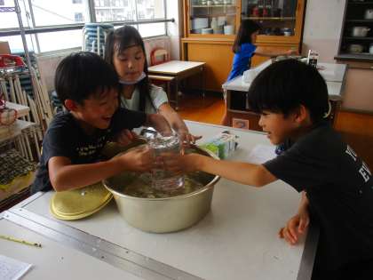 かさの学習でいろいろな入れ物のかさについて調べました。