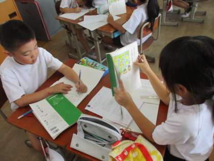 ことばでみちあんないでは、言葉やじゅんじょを考えて分かりやすく道あんないをペアやグループで取り組みました。