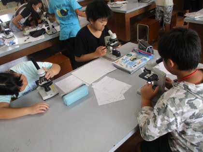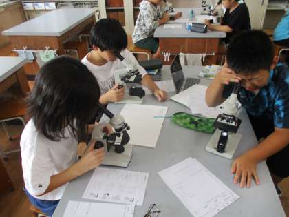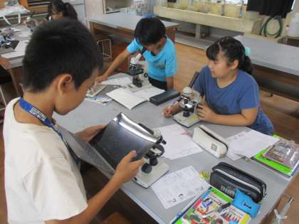 顕微鏡の扱い方や各部位の名称などを確認し、アサガオやツルレイシの花粉の観察をしました。