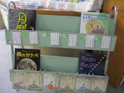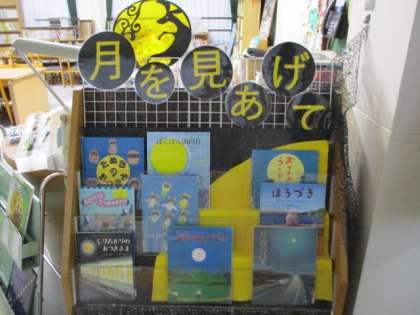 図書館の入り口を開けると、「おつきさま」が出てくる絵本が並んでいます。