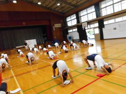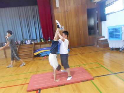運動会に向けて、一人技の練習や倒立の練習などをしています。諦めずに取り組んだり、アドバイスをし合ったりと前向きな姿が素敵です。