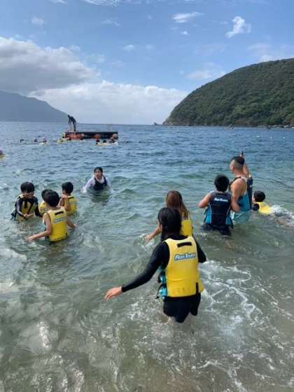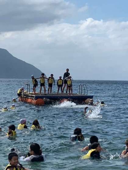 波と風の影響で、シーカヤックは中止となりましたが、海での水泳をすることにしました!かなり気持ちいいです!