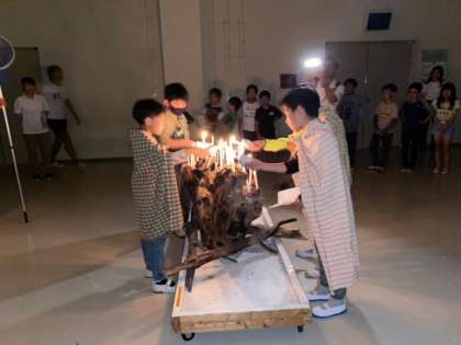 あいにくの雨模様なので、室内でキャンドルファイヤーを行いました!