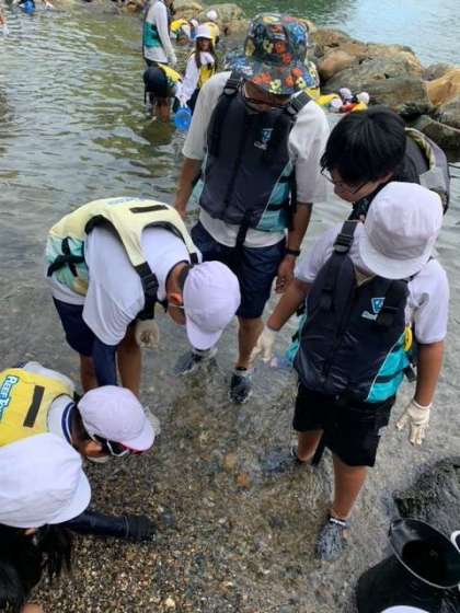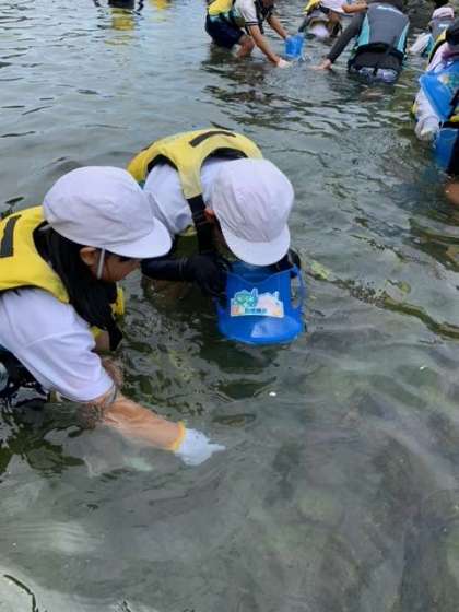 箱メガネを使って、海の中を覗く子どもたち!どんな生き物が見つかったかな?