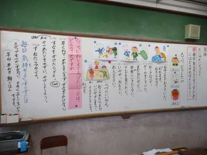 るっぺに教えてあげたいことを考えることを通して、これまでの生活を見直し、わがままをしないで規則正しい生活を送ろうとすることについて考えました。