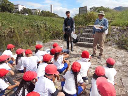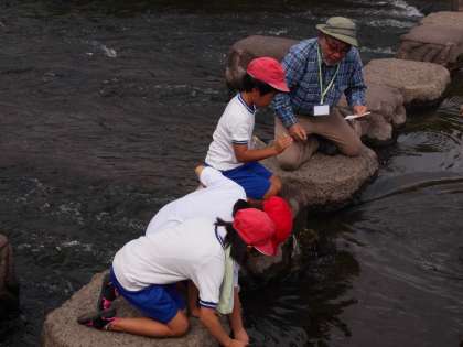 総合的な学習の時間の学習で、山科川の生き物調査に行きました。まずは、パックテストをしました。CODの数値は、0〜2と分かり、山科川は少しきれいな川ということが分かりました。