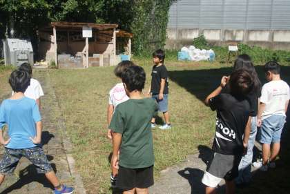 国語では、「ちいちゃんのかげおくり」の学習をしています。お話の中にでてくるかげおくりをしました。子どもたちは様々ポーズをとってかげおくりを楽しみました。