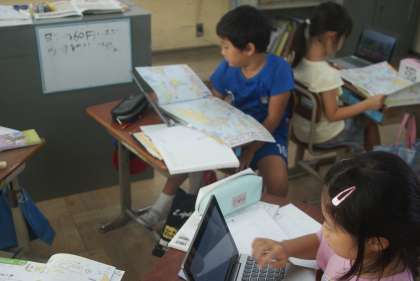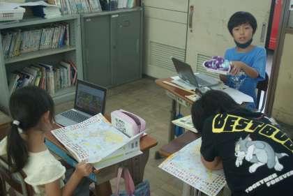 スーパーマーケットにあるたくさんの品物はどこから運ばれてくるのかについて調べました。スーパーのチラシを見ながら、地図帳と照らし合わせて、どこから運ばれてくるのか調べました。次の時間ももっと詳しく調べていきます。